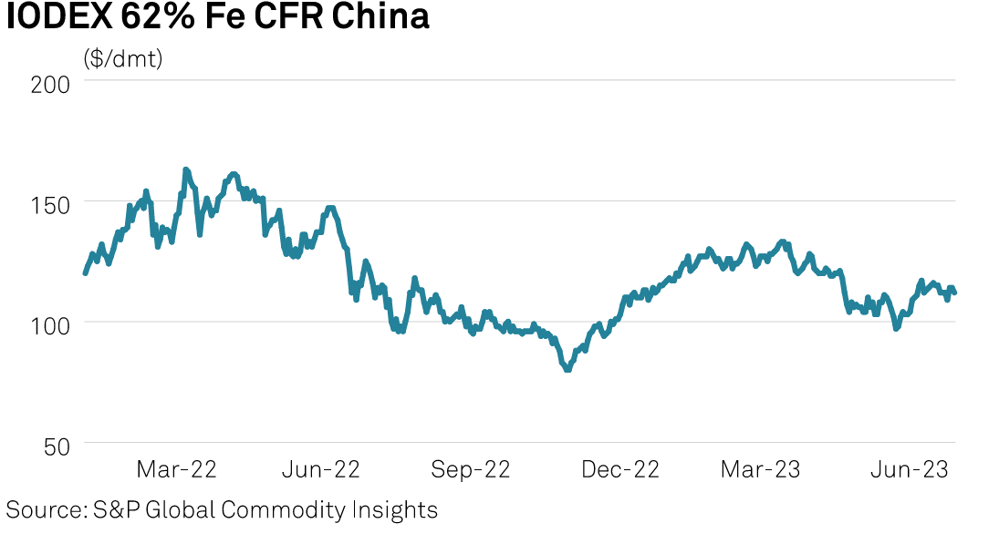 The Platts Iron Ore Index, or IODEX, was assessed at a wide range of $97.35-$122.4/dmt CFR China in Q2, showed data from S&P Global Commodity Insights. This reflected volatility in seaborne iron ore prices due to declining spot supply from miners and macroeconomic factors like interest rate hikes by the US Federal Reserve resulting in high financing costs.