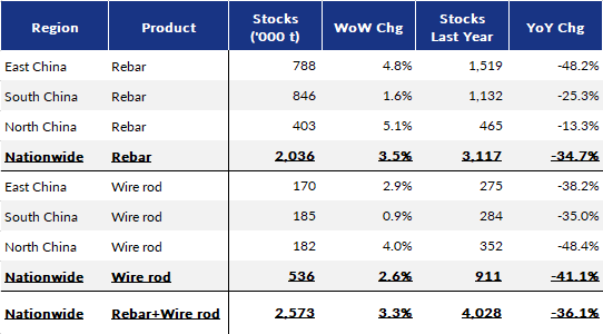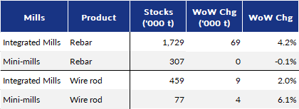 Table 5: Mills' Rebar and Wire Rod Stocks by Region by Jul 12