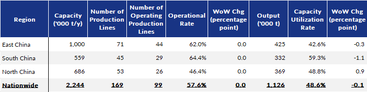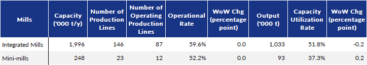 During the survey week, the average capacity utilization rate and operational rate of the bar mills installed at the surveyed producers showed some disparity, with the former reversing down from three weeks of gains, lower by 0.2 percentage point on week to 60.5%, while the latter rose for the second week, up 0.3 percentage point on week to 48.2%, Mysteel's data showed.