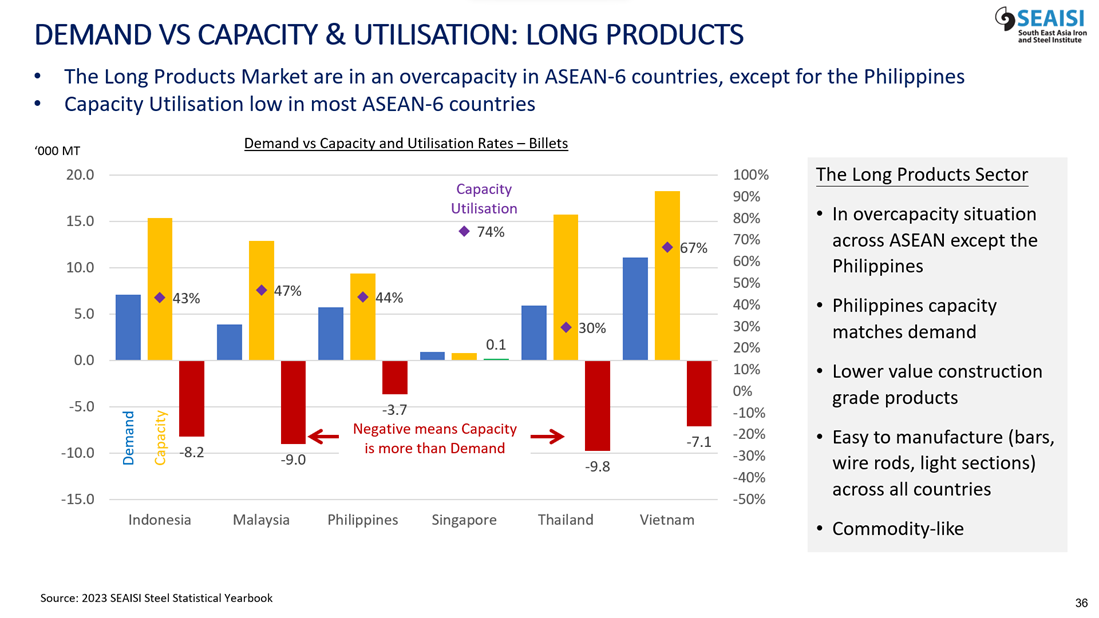 As such, any investment decision to set up a steel plant in ASEAN-6 countries should avoid this particular hot rolled (long products) sector, which is in overcapacity. Any attempt to enter this sector will result in a price war which will affect the profitability of the steel industry in that country.