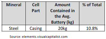 An electric vehicle needs a good battery to run smoothly. An EV battery consists many components such as graphite, aluminium, nickel, copper, and others. Steel is being use in the casing for battery.