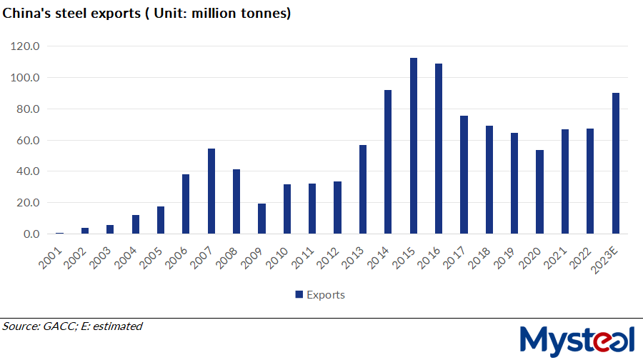 China's steel exports are expected to exceed 90 million tonnes in 2023, while steel imports may reach about 7.6 million tonnes, according to the latest monthly report released by the China Iron and Steel Association (CISA) on January 3.