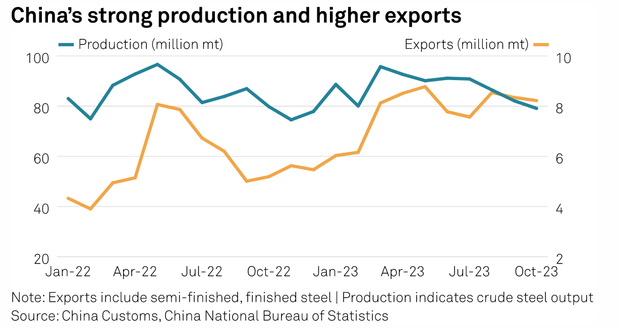 China's debt crisis, a sluggish consumer spending and growing steel overcapacity are expected to remain as the biggest hurdles for the domestic steel markets in 2024, stretching on their woes that have lasted for several months now, but silver lining remains amid robust prospects from the export sector.