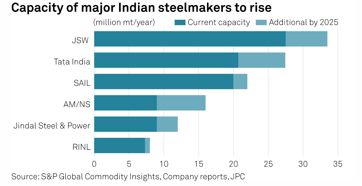 In Asia, steelmaking capacity is also seen expanding in Southeast Asia and India, which could lead to more competition for local supplies in respective markets.