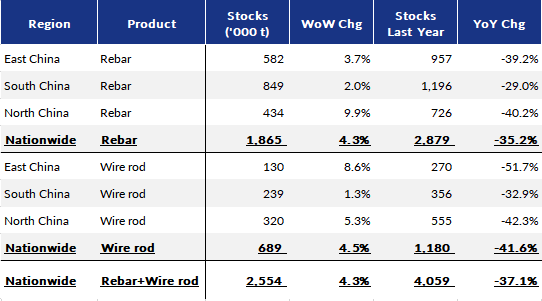 Table 5: Mills' Rebar and Wire Rod Stocks by Region by Jan 24