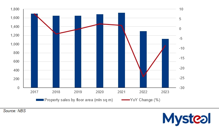 China's property sector is grappling with tight financial liquidity, and the woes now have a chilling effect on new project investment and drag the national economic growth in the big picture, according to Mysteel's report. The ongoing fund crunch within this struggling sector will exert sustained pressure on domestic steel demand, particularly for long steel items, throughout 2024, the report predicts.