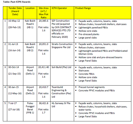 Since then, in the future government tenders for the Singapore government has required 50% of the PPVC to be from local supply, which means ICPH now have become viable projects.