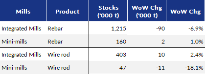 Table 5: Mills' Rebar and Wire Rod Stocks by Region by Sept 11