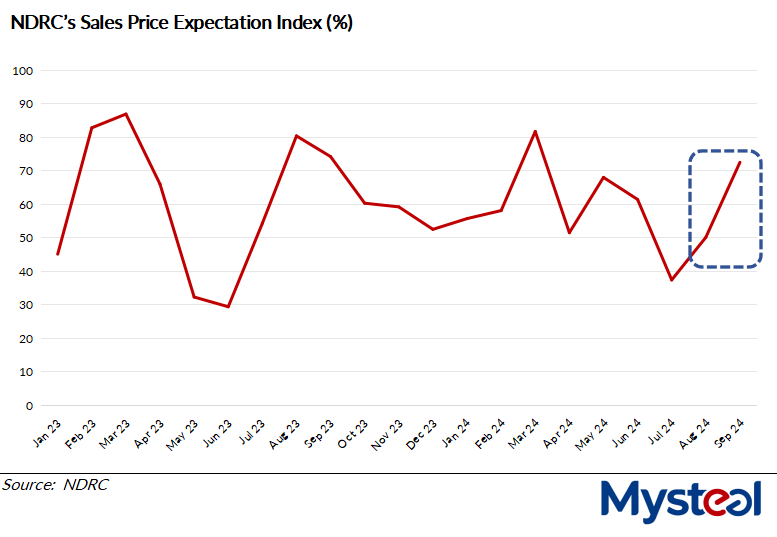 On September 24, China's National Development and Reform Commission (NDRC) released its latest survey on key wholesale steel markets across the country, including South China, Shanghai, and Tianjin, with the survey results showing that Chinese steel prices will likely continue their upward momentum throughout September.
