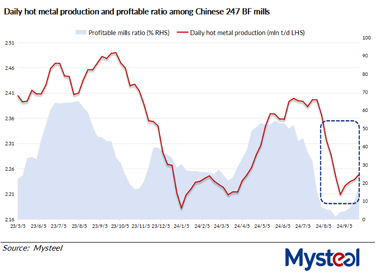 Mysteel's data shows that by September 27, some 18.6% of all blast furnace mills tracked were turning a profit, up from just 3.9% on August 30. This suggests growing confidence in the industry as more producers return to profitability.