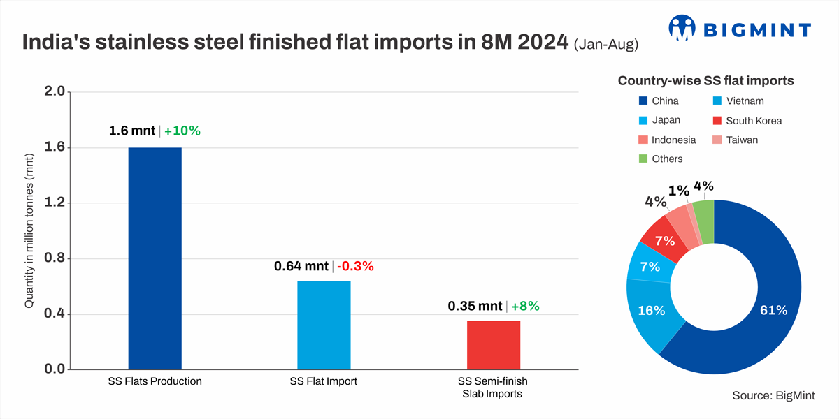 Morning Brief: India's imports of stainless steel (SS) long products rose nearly 20% in the first eight months of 2024 (8MCY'24) to about 20,130 tonnes (t) against the 17,100 t seen in the corresponding period last year (CPLY).
