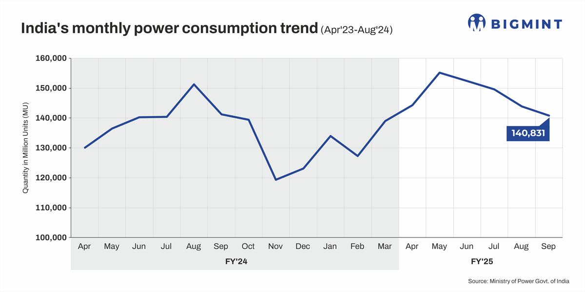 *Higher power consumption: Data collated by BigMint reveals that the country's power consumption in H1FY'25 increased by over 5% y-o-y to 886,128 million units (MU) from 839,904 MU in the