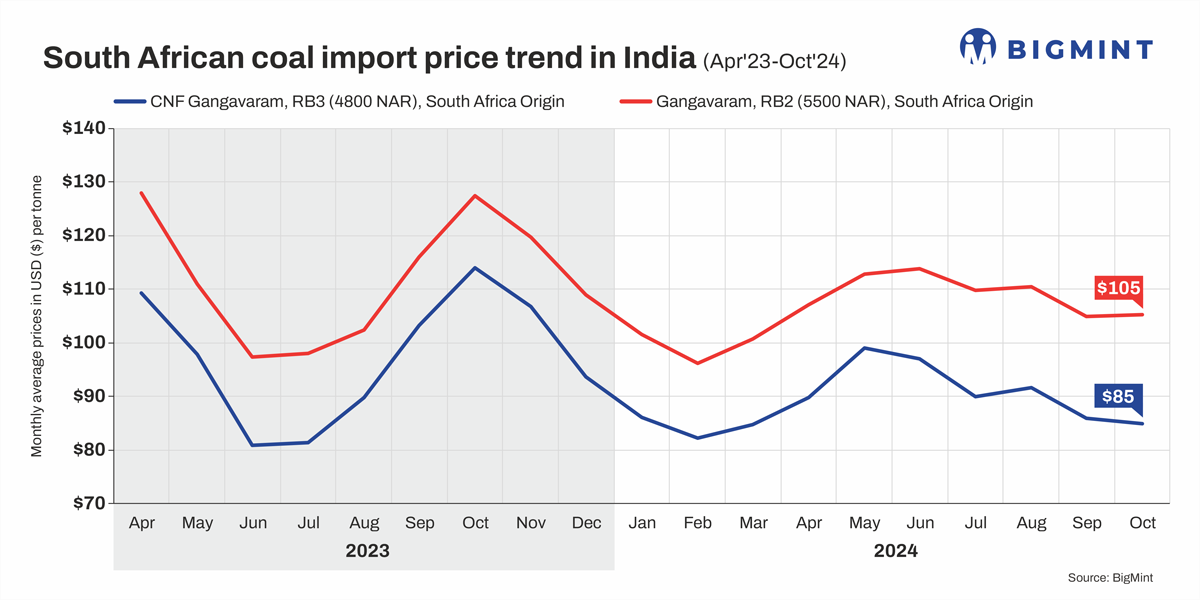 Prices stayed stable which created a favourable condition for imports. Data shows that the import prices for RB2 coal remained largely stable at $109.8/t in H1FY'25 as against 108.6/t in H1 of the last fiscal.