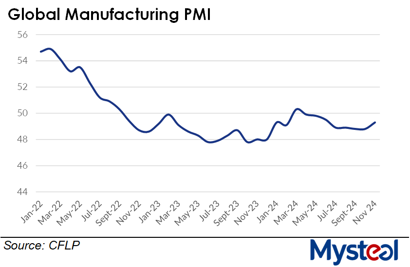 The global manufacturing Purchasing Managers' Index (PMI) reached 49.3 in November, posting an on-month rise of 0.5 point and becoming the highest reading for this half of the year, according to the latest data compiled by the China Federation of Logistics & Purchasing (CFLP).