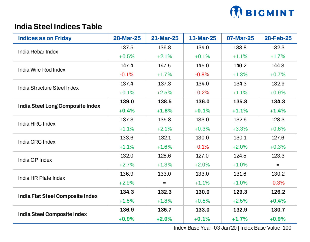 Morning Brief: BigMint's India Steel Composite Index climbed up by 0.9% w-o-w to a nine-month high of 136.9 points on 28 March 2025, as prices continued to rally following the safeguard duty recommendation. Supply shortages also pushed up prices in certain segments.