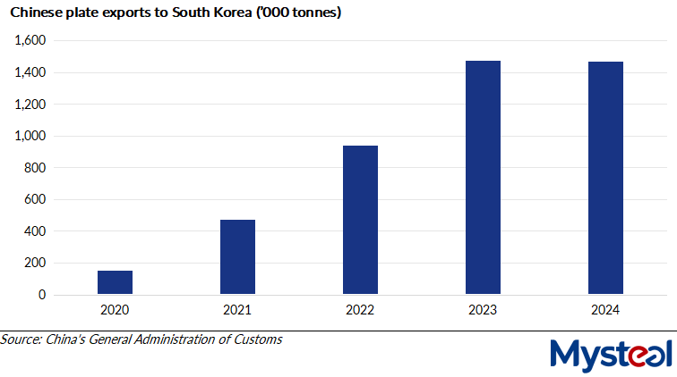 China-origin steel plates exported by China to South Korea are mainly used in the shipbuilding sector, such as ship plates, and for tool and mould steel. While Chinese suppliers face higher duties, production costs of South Korean shipbuilders may increase, market sources noted.