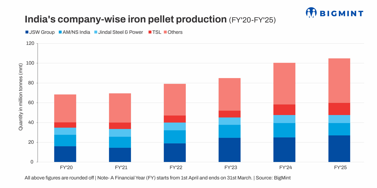 Morning Brief: India's iron pellet production reached over 105 million tonnes (mnt) in financial year 2024-2025 (FY'25), an increase of 5% y-o-y from 100 mnt in FY'24, as per BigMint data.