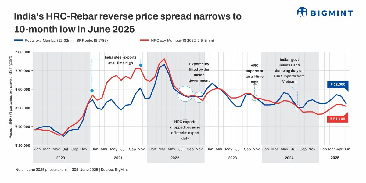 Factors influencing Indias HRC-rebar spread in Jun25