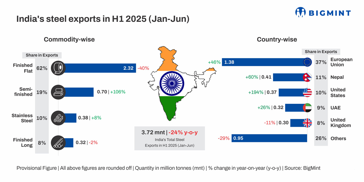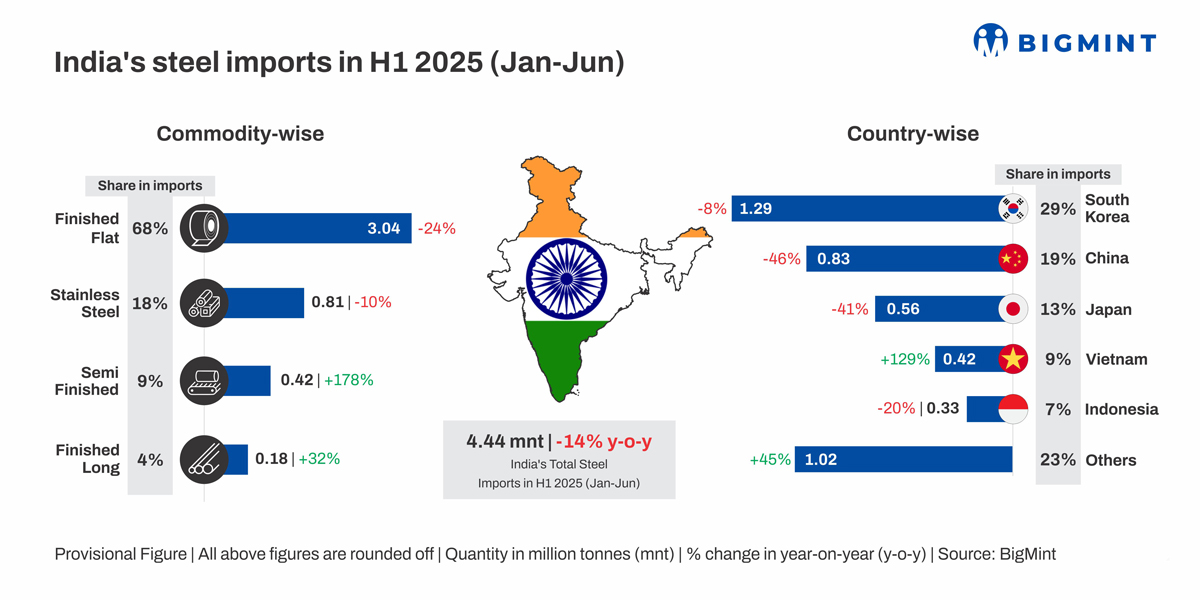 Morning Brief: India's steel export-import figures reflect a subdued and fragile market in H1CY'25, as compared to the same period last year. While India was able to temper its import growth with the 12% provisional safeguard duty, export momentum fizzled out, due to sluggish end-user consumption and persistent global price weakness.