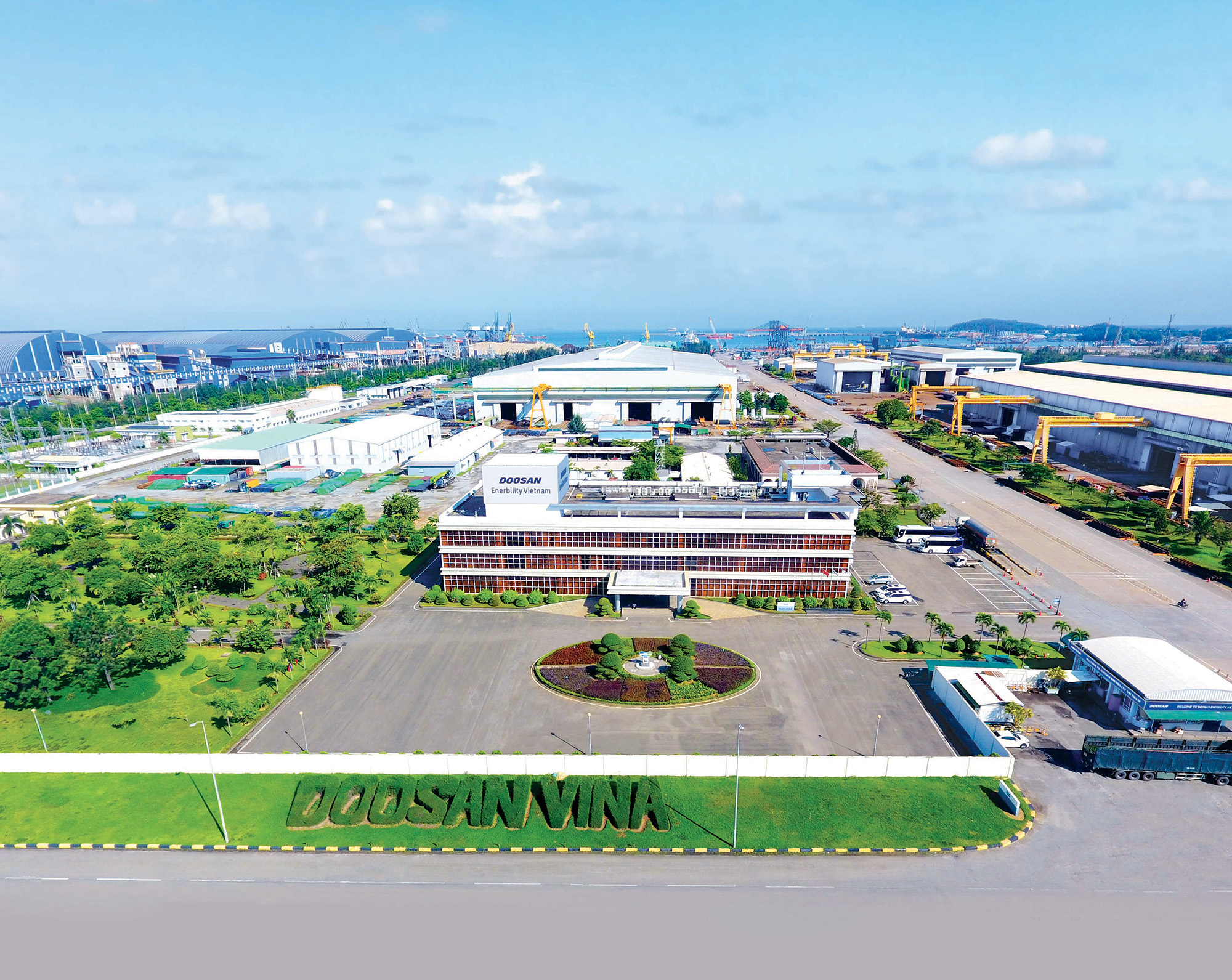 Doosan Enerbility Vietnam or Doosan Vina is a $300 million industrial complex, built on 100 hectares on the coast of Central Vietnam’s Quang Ngai Province. The company specializes in the manufacture of power plant equipment; port cranes; desalination plants; fired heaters, modules and steel structures and coming is the offshore wind power products.